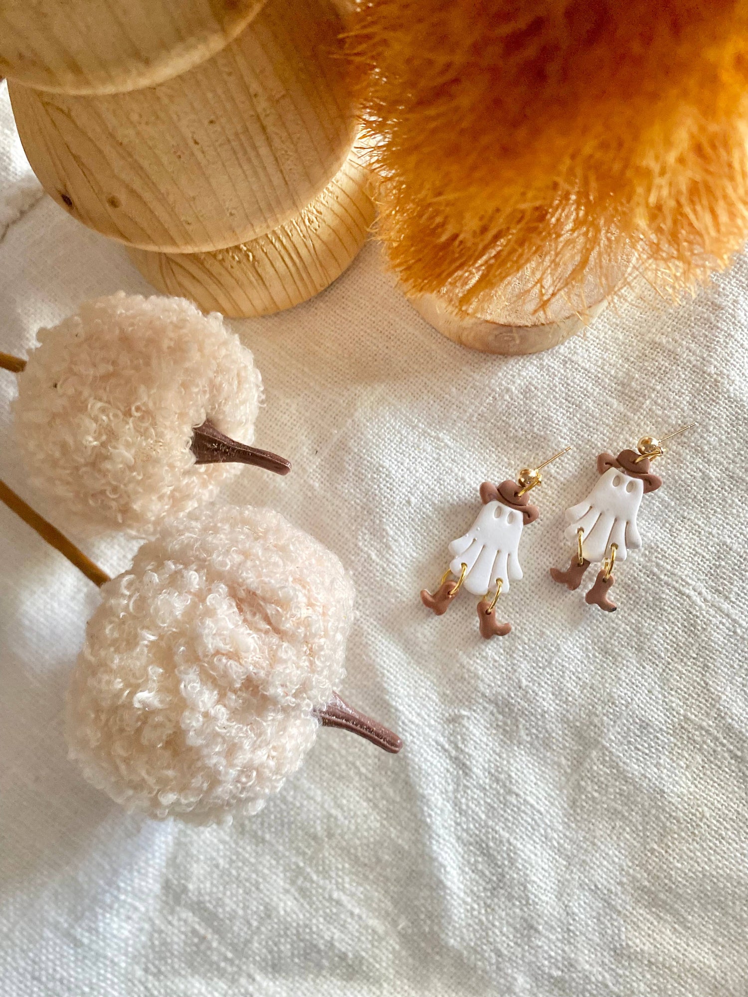 Embrace a playful, spooky style with these Boohaw Ghost Earrings. Handmade from lightweight polymer clay, they offer comfortable all-day wear while adding a unique, charming touch to your look. Perfect for those who love quirky, handmade accessories that stand out effortlessly.