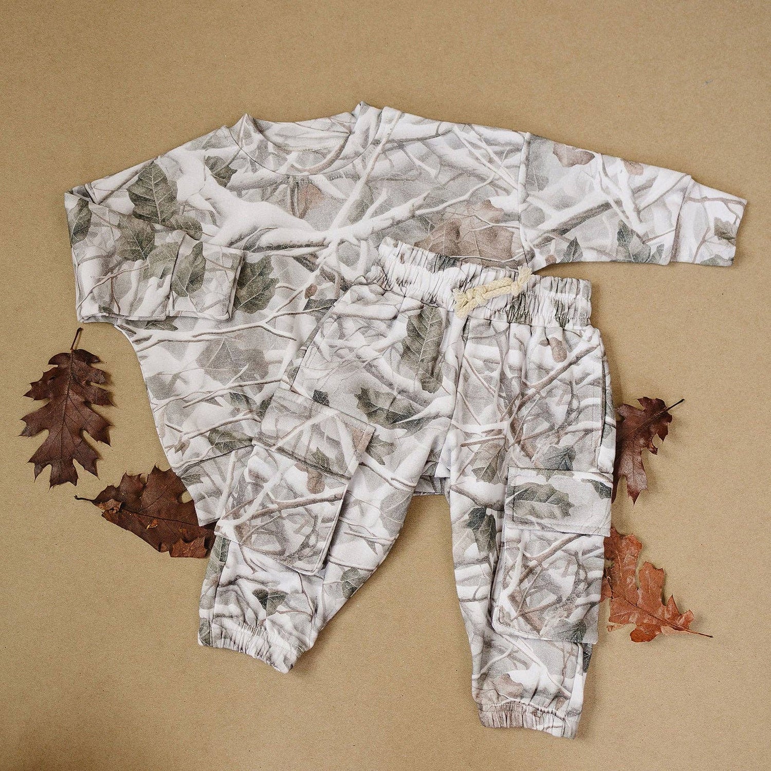 Let your little one rock a laid-back vibe with this camo jogger set! Designed for all-day comfort, the soft, cozy fabric keeps kids feeling snug whether they're playing in the backyard or lounging at home. The classic camo pattern adds an edgy touch to their everyday wardrobe, while the relaxed fit gives them room to move and groove. Perfect for kids who love style with their comfort!