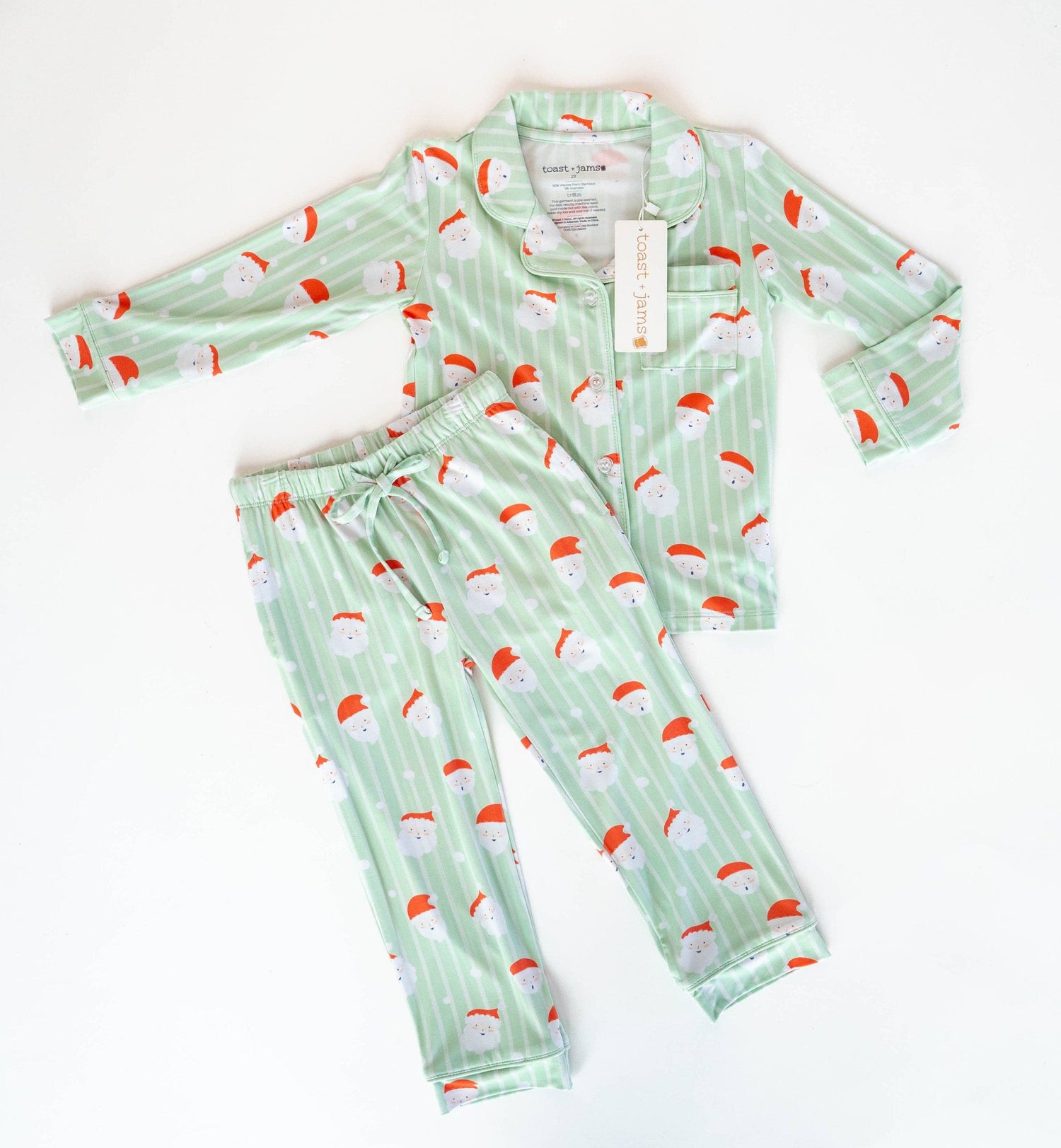 Tag-less design for ultimate comfort—no itchy labels here. Soft, breathable bamboo viscose keeps your little one warm in the winter and cool in the summer. Our classic button-down set fits true to size or slightly generous, with a cozy but polished look perfect for bedtime or holiday mornings. But if in between sizes, size down!