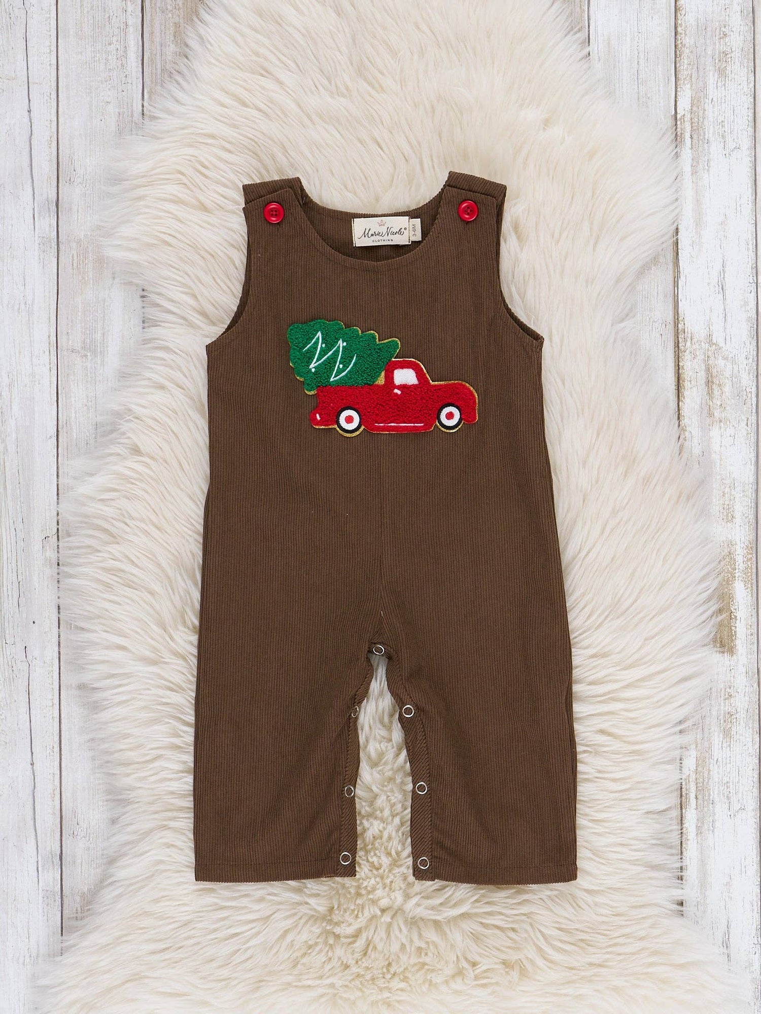 The Farmhouse Striped Holiday Truck Romper blends fun with everyday comfort, featuring a fuzzy Christmas truck and classic striped sleeves. Perfect for seasonal family outings or gatherings, this playful romper offers easy dressing and cozy style for little ones.